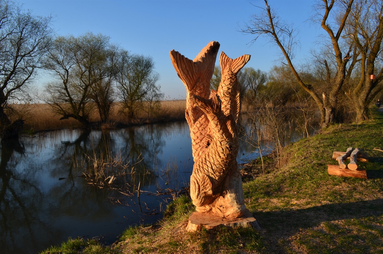 На стежці вам будуть зустрічатися мешканці Дністров'я. Інколи - цілком реалістичні та живі, а часом - дерев'яні, які із сухого дерева створив Олександр Коваленко.
