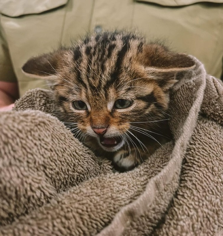 - Після чергового бомбардування Одеської області жителі навколишніх сіл знайшли гніздо з кошенятами, а поруч – мертву маму, - розповіли зоозахисники, - на перший погляд здається, що це звичайні домашні кошенята, але не заводьте себе в оману. Це середньоєвропейський лісовий кіт (лат. Felis silvestris silvestris) дуже потаємна тварина, яка фактично не наближається до поселень і уникає всіх можливих контактів з людиною. Але, незважаючи на це, ця унікальна тварина вважається практично зниклою. В Україні їх налічується близько 300 штук.