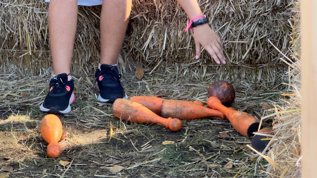 З величезних тюків з сіна збудували ціле містечко з башнями, млином та тваринами. До речі, щодо мінусів, нещодавно в Польщі були значні опади, тож гарбузи та сіно дуже намокли, що видно по стану овочів. Однак навіть попри ще вологий ґрунт - це не зменшило бажання відвідувати ферму.